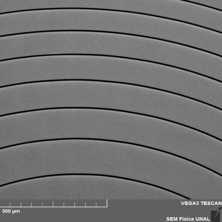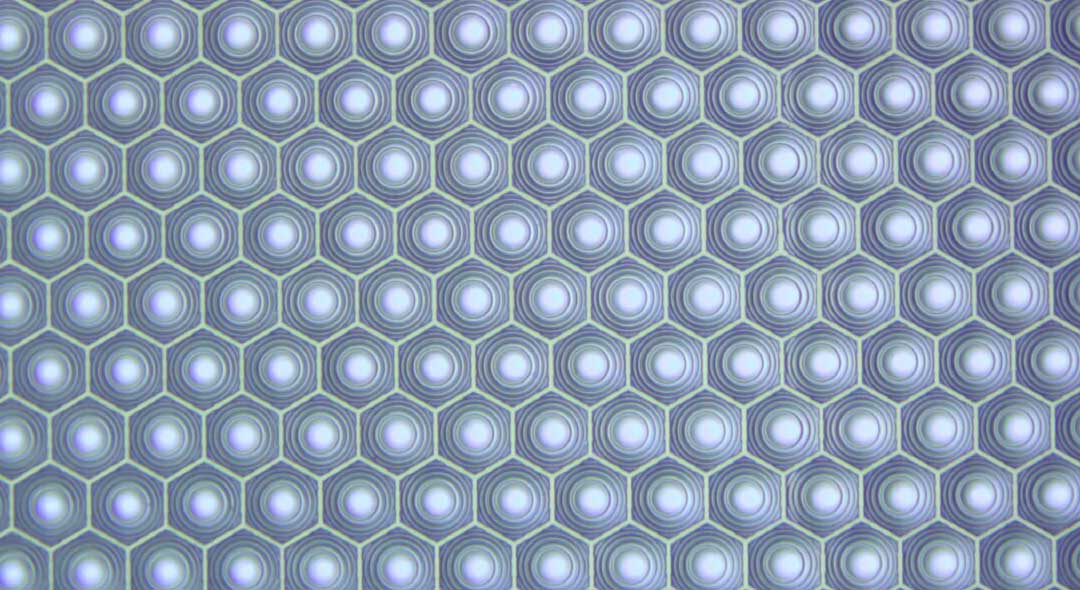 Fresnel microlens pattern obtained through high-precision optical lithography processes. These diffractive structures enable directional control of light and the formation of customized wavefronts, applied in the development of optical sensors, advanced microscopy, and miniaturized focusing systems.