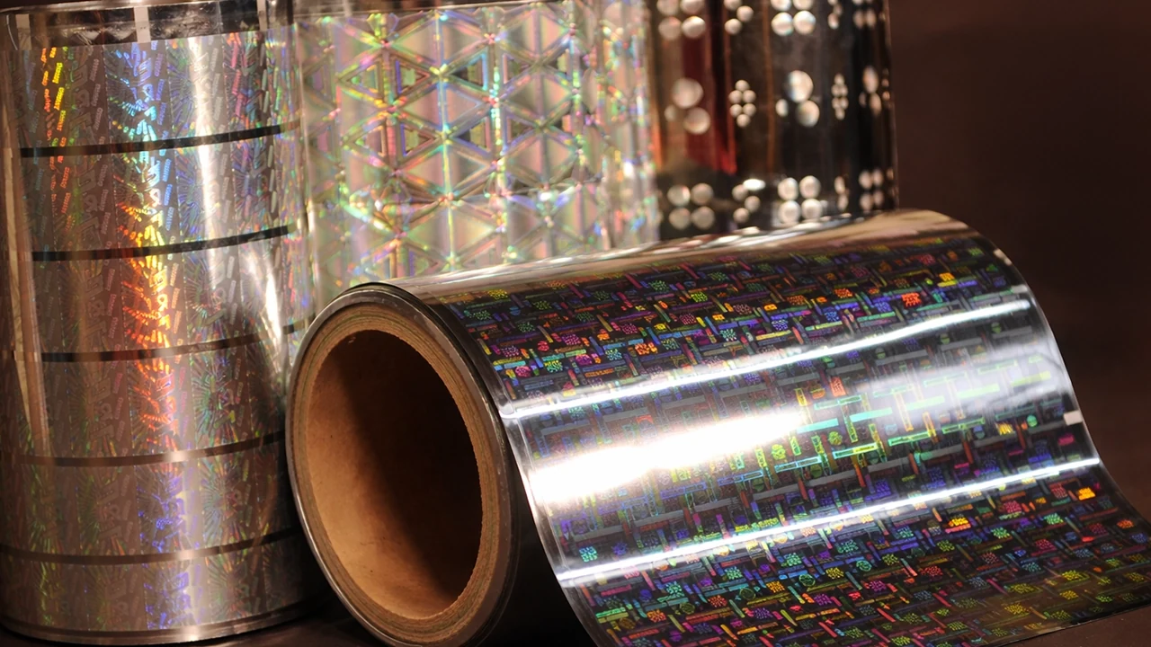 Hot stamping holographic foil allows holographic designs to be transferred directly onto packaging materials during printing processes.