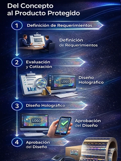At CI Hologramas, our team works with brand owners and designers to transform logos, graphic elements, and product imagery into holographic security designs that combine visual appeal with authentication features.