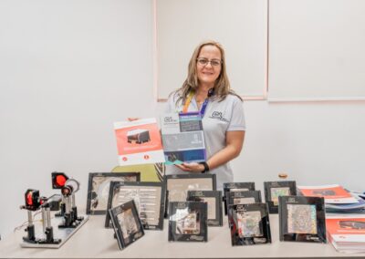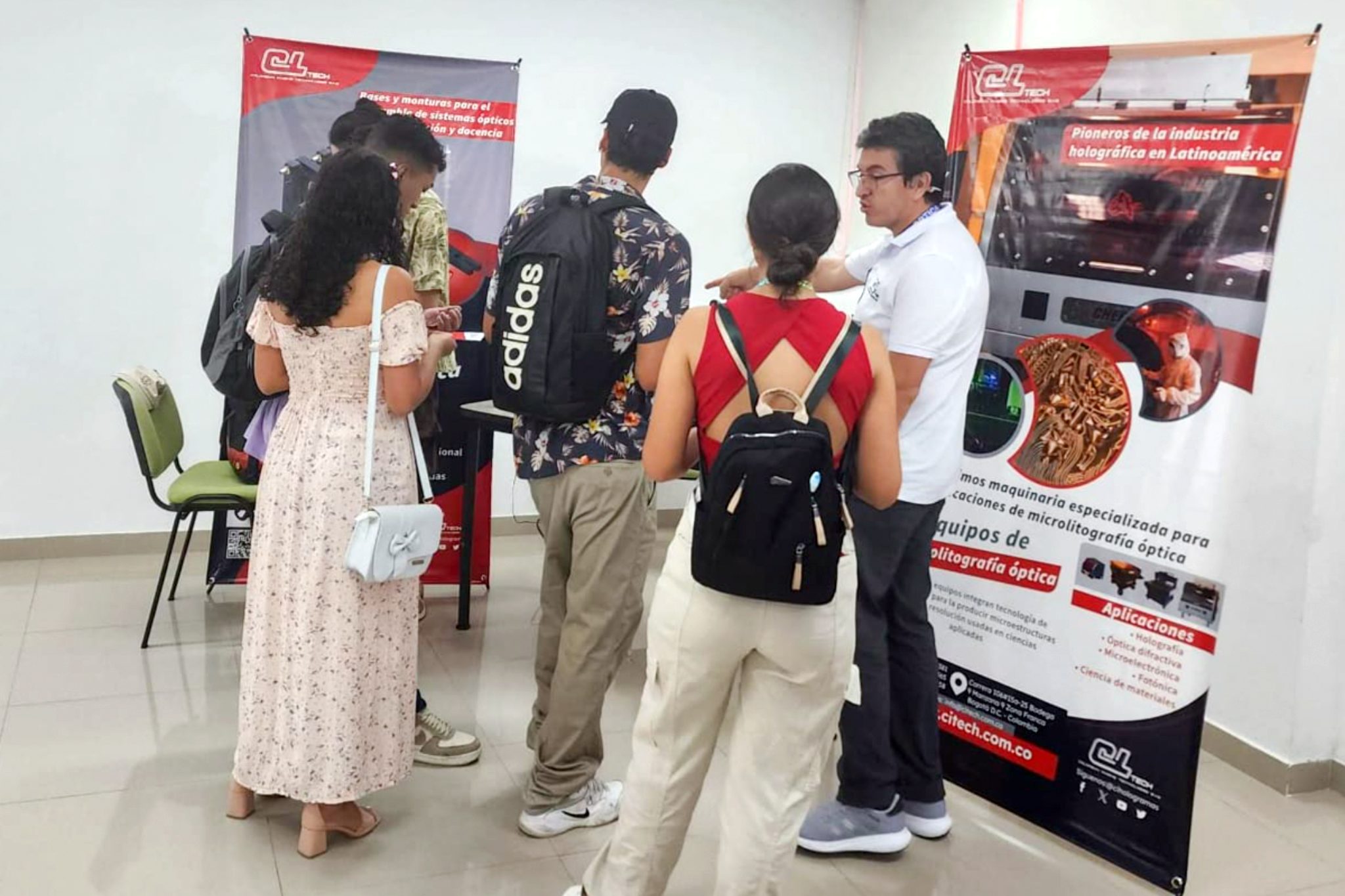 Durante el evento se destacaron aplicaciones del sistema Firefly® Research Edition, utilizado para el registro de hologramas de alta resolución en materiales fotosensibles. Firefly® es una marca registrada de Combustión Ingenieros S.A.S.